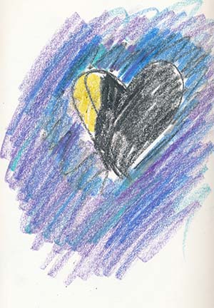 I share these pictures to show how my healing progressed! I do not believe in analyzing the color, nor do I consider myself a visual artist – just a person needed to express inner sense of being. You can see how my darkness was removed and my happier inner light began to be my dominate feeling.